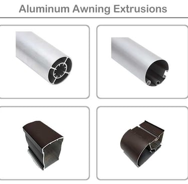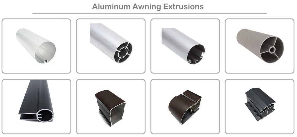 Fixed Aluminum Awnings — extruded panels or metal sheets with framing