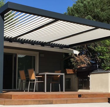 Bioclimatic Louver Pergolas — 0–120° adjustable louvers with motor