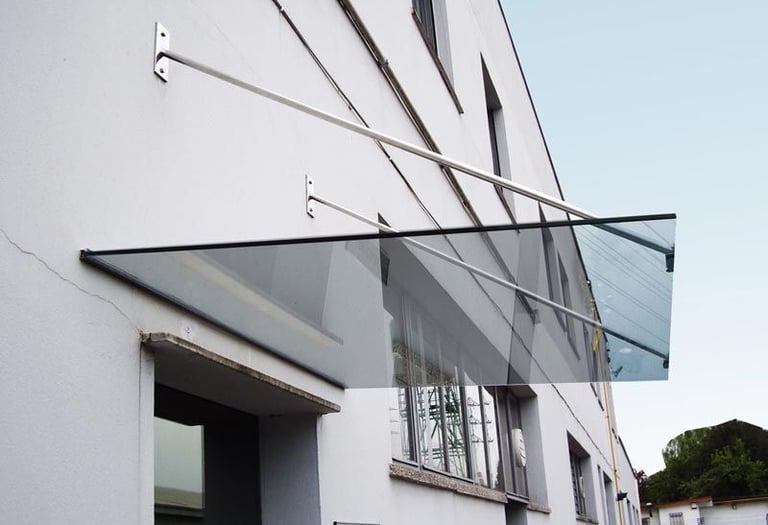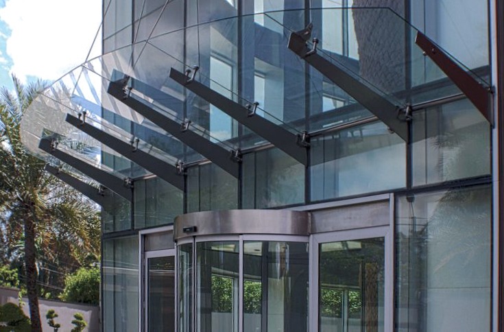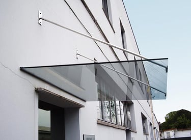 Frameless glass canopies create a modern addition to the external face of properties. Utilising glass in building design, especially glass canopies, adds a contemporary twist to the façade while enhancing the surrounding architectural design.