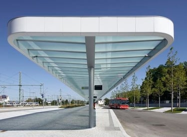 INDEPENDENT CANOPIES at bus shelters provide essential protection for passengers waiting for their rides. These structures offer shelter from rain and sun, enhancing the comfort of commuters. The design can incorporate seating and information displays, making the waiting experience more pleasant and efficient. Their modern aesthetics can also improve the overall look of transportation hubs.