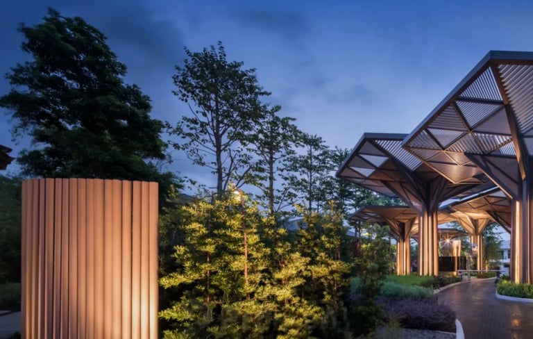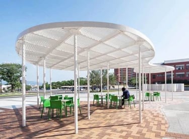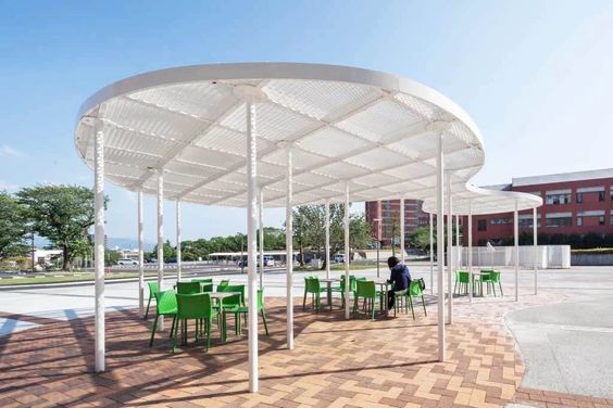 These canopies are suitable for various scenarios, including public transport shelters and hotel pavilions, providing visitors with comfortable shaded spaces.