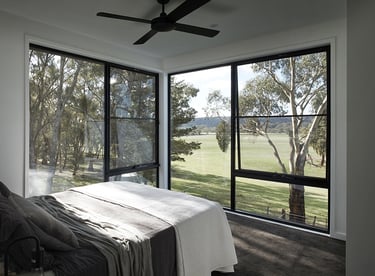 The awning window opens outward at a small angle, allowing ventilation even in rainy conditions while keeping water out. It's perfect for Australia's climate, offering airflow and rain protection for homes and commercial buildings.