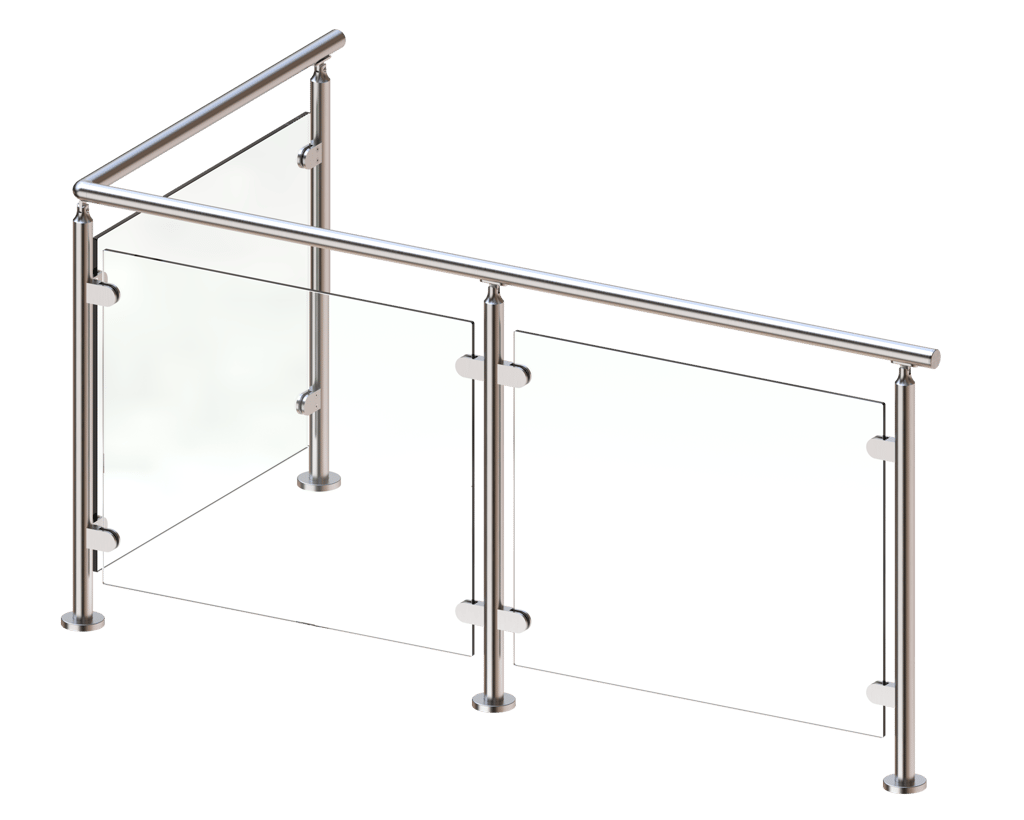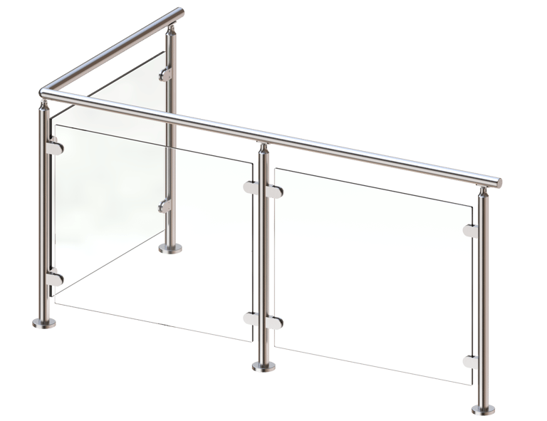 The metal glass railing posts are similar to Viewrail’s other rod railing and cable railing posts, but are simply created to work with glass clips rather than rod and cable infill. You should use two glass railing posts for every 4’ panel of glass for stair or deck railing.