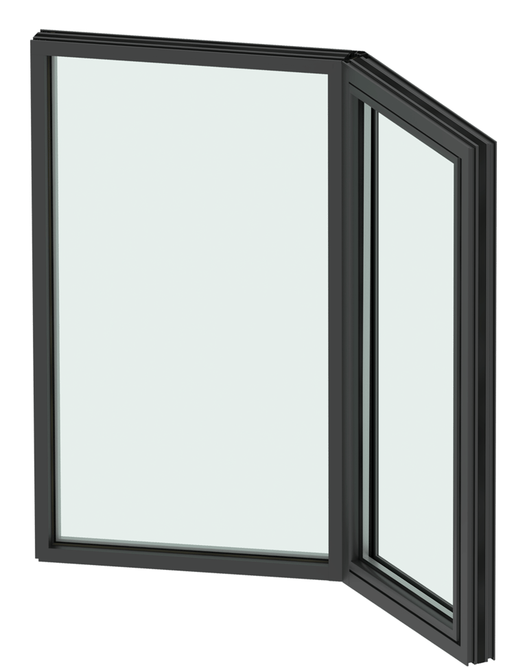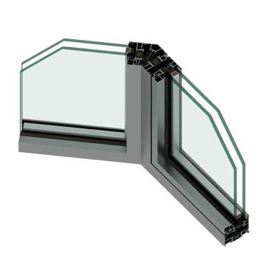 Dedicated angled profiles (such as 30° or 45°) connect the central and side units, transferring wind and glass loads from the projecting bay back into the main frame for improved corner stability. The profiles maintain a continuous thermal break and sealing system, preventing thermal bridging while ensuring air and water performance.