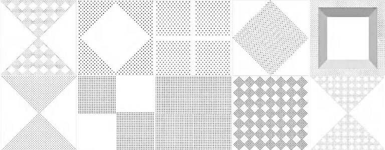 The paterm of the surace ofthe metal ceing afects the viswaland the acoustical perormance,Thelr advanced alporthms are shaped into stuctures that maxmize hole densitnfor perfect light diffusion, sound environment in buildings and heat flow.