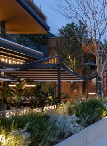 The commercial project located in Chongqing is a food and cultural community square, featuring a winding coastline layout. The buildings are arranged along the coastline, forming a streamlined main pedestrian street, with several key commercial spaces directly built along the water. The total building area reaches 6,000 square meters. GBA provided various metalwork, retractable pavilions, glass curtain walls, and railings, contributing to the creation of a unique modern style.
