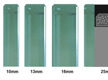 They accommodate various glass types with thicknesses from 6 mm to 25 mm, including tempered, laminated, insulated, and decorative options such as textured, sandblasted, or colored glass.