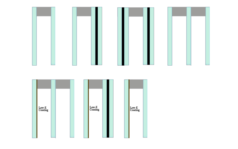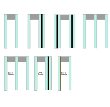 Insulated Glass Units (IGU) Double or triple glazed panels with air or gas-filled spaces for insulation.