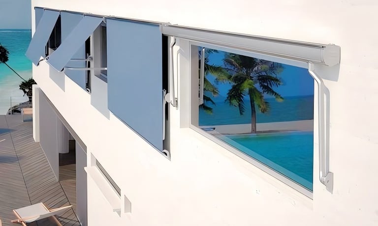 Made with strong aluminum arms and weather-resistant fabrics, this awning is ideal for windows, balconies, and shopfronts, combining durability with visual appeal.