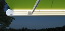 This brilliant lighting effect converts the room under the awning into an oasis of well-being in the evening