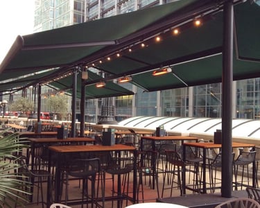 Free-standing Awning with an aluminum frame, designed for open outdoor areas, offering reliable shading and flexible application for residential and commercial projects.