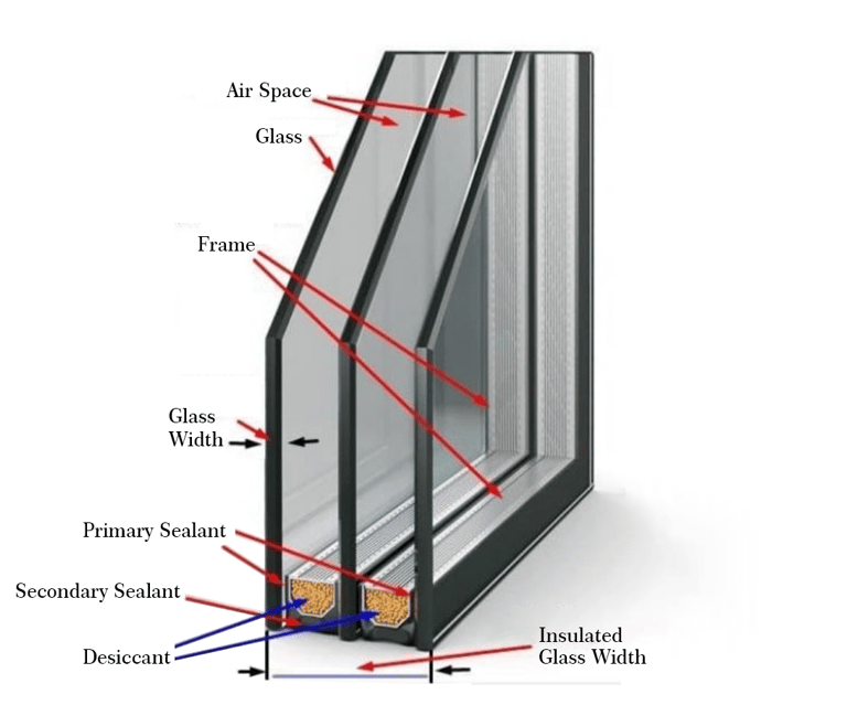 Triple insulating tempered glass units consist of three layers of tempered glass separated by two sealed air spaces, significantly enhancing insulation and lowering the U-value (thermal transmittance coefficient) for improved energy efficiency. This design is particularly beneficial for high-performance buildings and residential spaces, as it withstands extreme weather, maintains a comfortable indoor environment, and helps reduce heating and cooling costs, enhancing the building's sustainability.