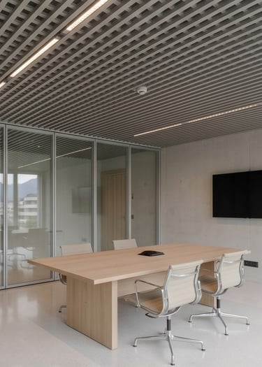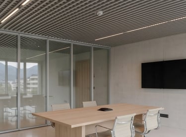 The system is designed with modular components and custom tracks/connectors, ensuring high installation accuracy and structural stability. Clean lines and minimal detailing align with contemporary office aesthetics while also improving installation efficiency and ease of maintenance.
