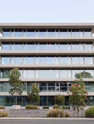 This project is a contemporary office building designed with a focus on minimalism and functionality. Clean volumetric composition and a high ratio of glazing create a bright, efficient, and transparent working environment. The facade is primarily defined by curtain wall systems, integrated with refined aluminum elements to achieve a cohesive and orderly architectural expression.