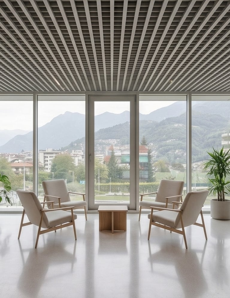 Precise module control and restrained vertical mullions create a clean, refined appearance. Transparent corner treatments enhance spatial continuity and openness.