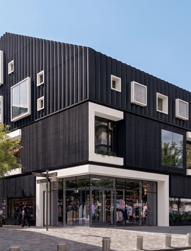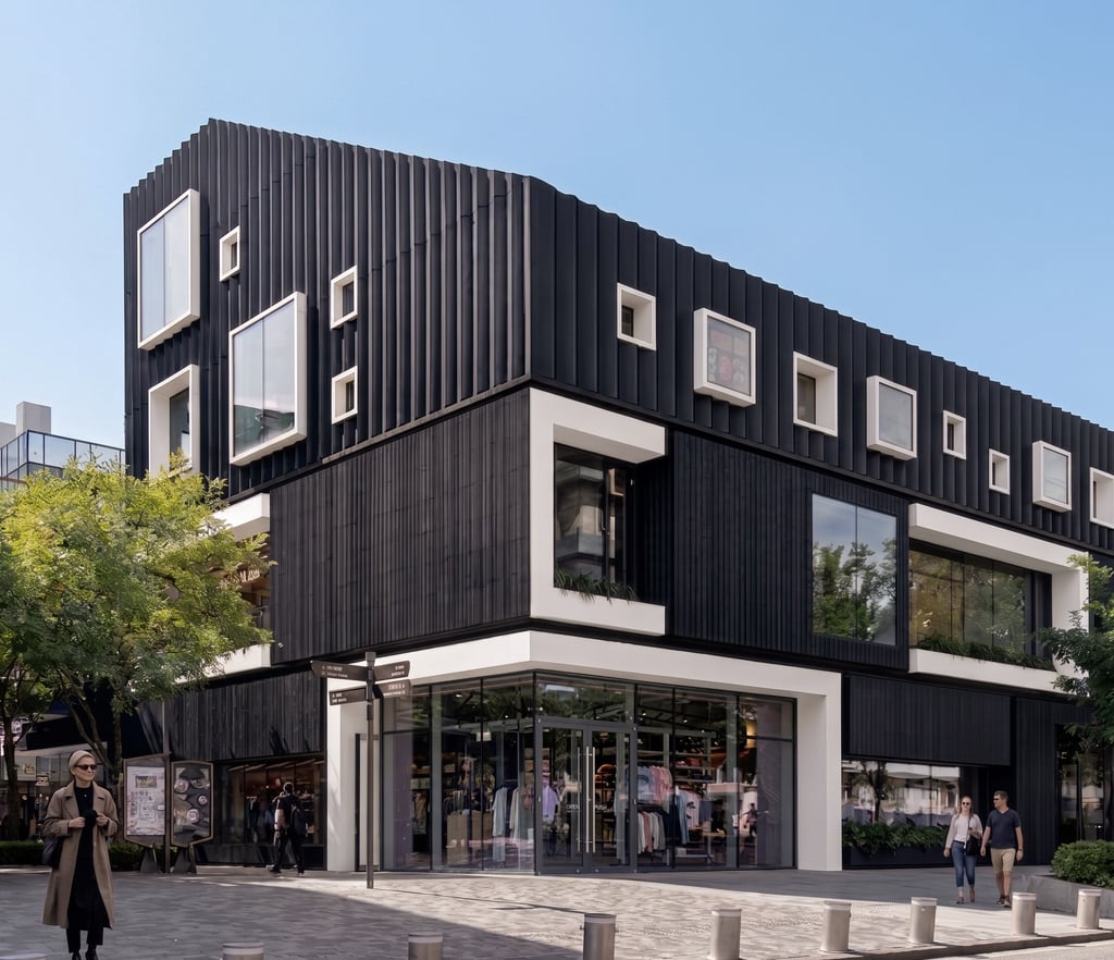 Located in a prime urban corner, this commercial mall project is defined by articulated volumes and a highly recognizable street-facing presence. The open ground-floor retail layout, combined with transparent entrance design, enhances pedestrian flow and maximizes commercial exposure.