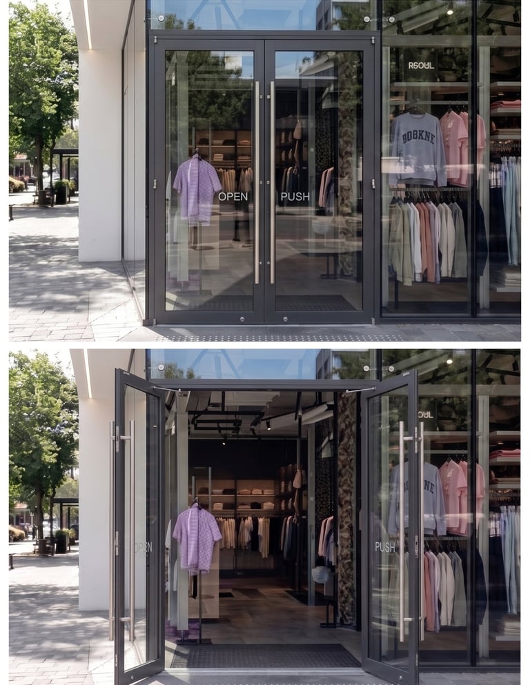 The commercial door system is engineered with security as a core priority, integrating glazing, structural reinforcement, and locking mechanisms into a multi-layer protection strategy.
