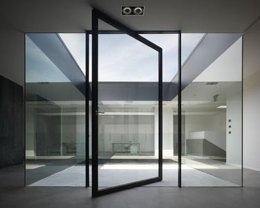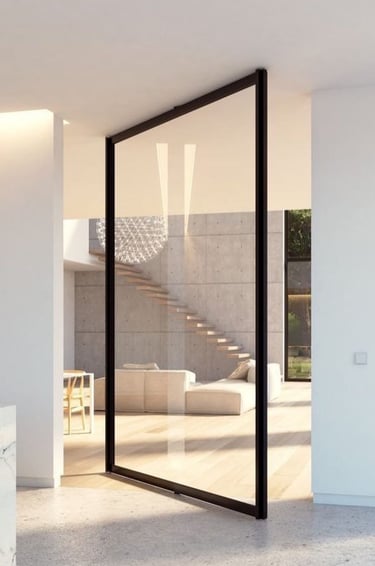 Pivot Door System with double glazing and multi-layer sealing, providing excellent thermal insulation, airtightness, water resistance, and durability for residential and commercial use.