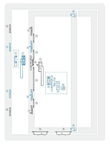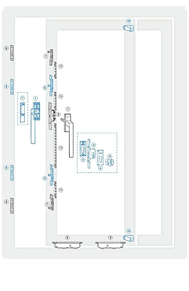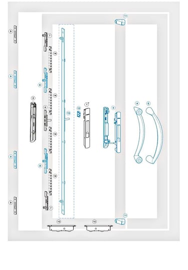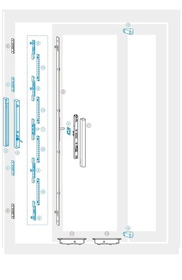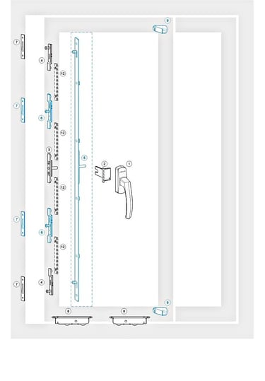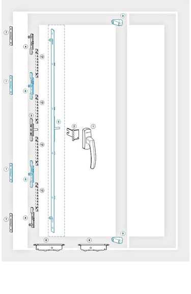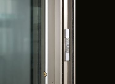 Hidden locking point and locking bracket: Aligned smoothly with the profile for unobstructed passage. The locking mechanism ensures the door's safety when closed.