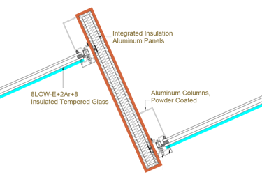 The finish color and structure of the sloped glass curtain wall on the second floor were the result of extensive discussions and adjustments. After carefully refining the design, we achieved an outcome that not only perfectly aligns with the original style but also ensures ease of installation. The thoughtful coordination of color and structure enhances the building's overall aesthetic, maintaining the architectural harmony while providing a practical, functional solution for construction. This collaborative effort showcases our commitment to delivering high-quality, tailored solutions that meet both design and technical requirements.