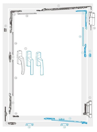 ndustrial-grade aluminium alloy profiles are cast as a single body, processed into structural frames with precision by CNC, then subjected to unique treatment technology to achieve the same colour and texture as handles. The ideal match for aluminium or steel windows.
